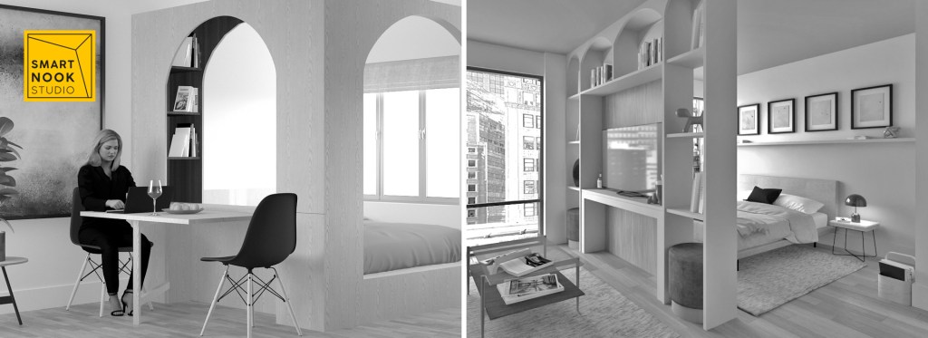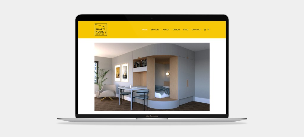Smart Nook Studio isminden de anlaşılacağı gibi küçük dairelerdeki köşe alanları birden fazla aktivite için fonksiyonel alanlara dönüştürerek rahat ve konforlu evler tasarlıyor. Logo tasarımı için bu açıdan yaklaşarak asıl hedefimiz olan köşe kısmını logo tasarım sürecinde ön plana çıkardım.